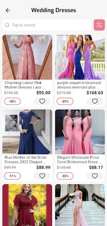 Whether you're shopping for a special event like dresses for wedding guests or just looking to treat yourself, this cheap women’s dress shopping app is the perfect destination for all your dress shopping needs. With an endless selection of beautiful dresses like wedding dresses, cheap dresses, formal dresses and the easy shopping experience provided by our app, you'll be sure to find the perfect dress for any occasion.