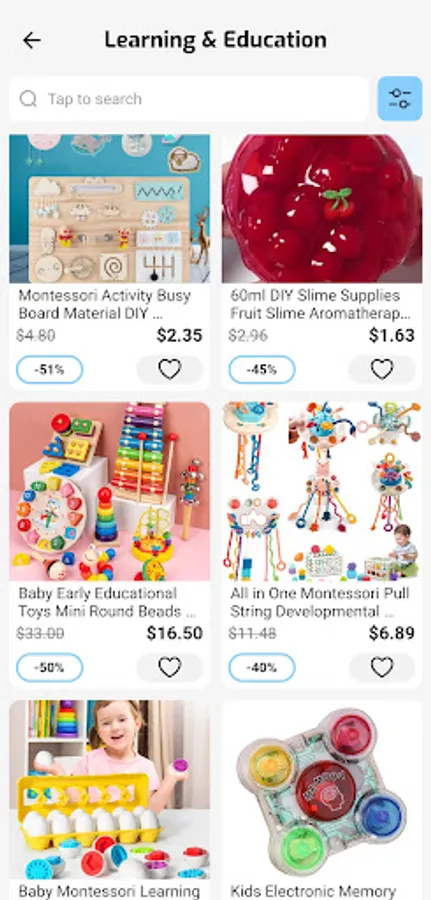 with our beautiful and intuitive design you will enjoy your online shopping experience within our app. Buying kids toys has never been so simple and more enjoyable. Browse a huge collection of Montessori toys, baby toys and toddler toys. Add your favorite toys to the wish list and enjoy great shopping discounts.