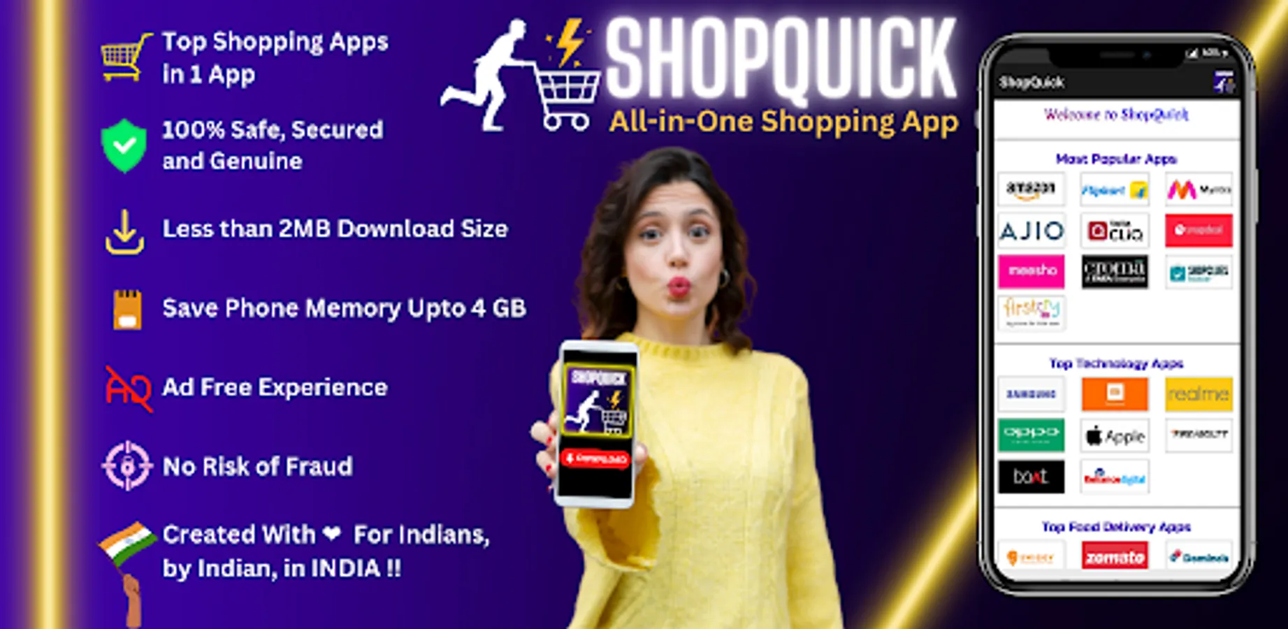 Overall, ShopQuick is all in one shopping app that is Free, Faster and 100% Secured Shopping app have all apps in one including Amazon, Flipkart, Myntra, Ajio, Meesho, Jio Mart, Big Basket and More