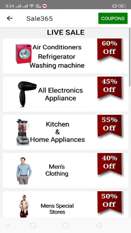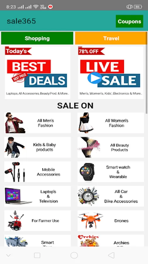 This app brings you all shopping websites sale in india including Flipkart, Amazon, Myntra, Paytm mall, Snapdeal, Shopclues, Nykaa and 30+ platforms.
