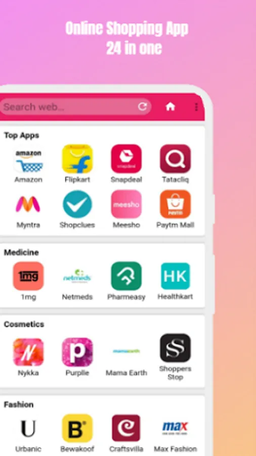 you can shop on all those Online Shopping apps and do not need to keep every Online Shopping app separately and have the same experience like the way you shop from those Online Shopping apps and your phone will not get hanged and you can enjoy your Online shopping in india.
