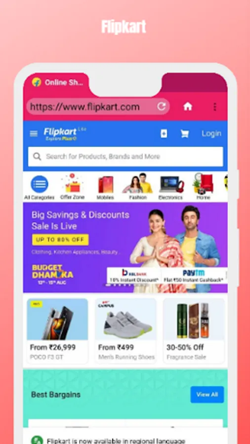 All the websites shown in the Flip Online Shopping - All In One kart are not owned by the developer of this app and have gone through proper permission procedure to promote their websites via various affiliate networks.