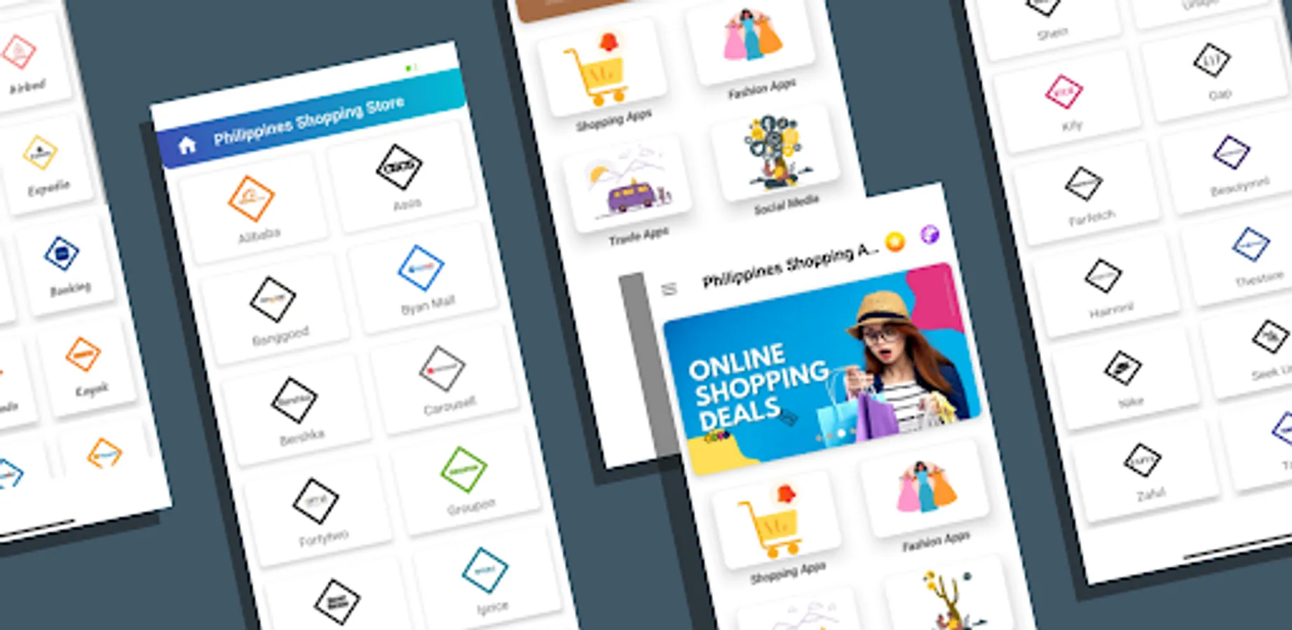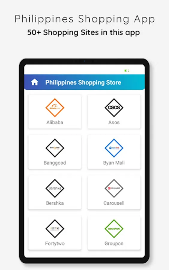 Online Shopping Philippines - Philippines Online Shopping App contains all top Philippines Shopping websites like Lazada, Shopee, Shopinas, ACJ, Bershka, Groupon, Harvey Norman, Asos, Zalora, Bayanmall, RedMart, Banggood, etc.