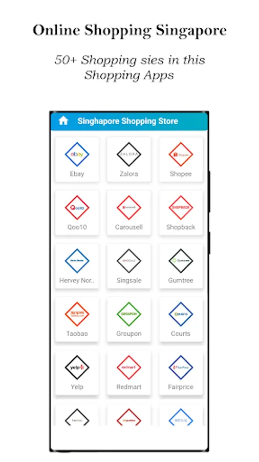 Singapore Shopping App- Includes all major online shopping websites in Singapore like Amazon, Qoo10, Carousell, Lazada, Shopee, Zalora, Hipvan, Ybhomestore, Reebonz, Lovebonito, Pomelo, Aliexpress, Banggood, etc