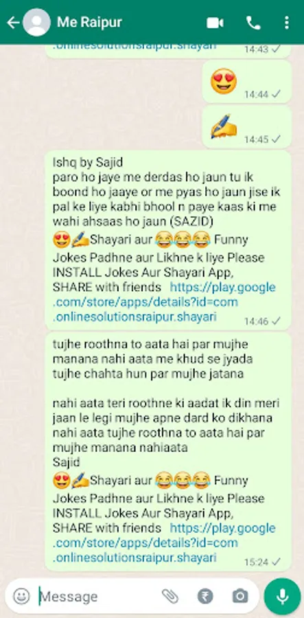 Dosto ko Jokes aur Shayari Message kariye, Dosto hum aksar apne chahne walo ko kuchh achcha message bhej kar unhe khush karna chahte hai, par kai baar hamare paas bhejne layak messages nahi hote, ab is app k zariye aap naye aur achche message bhej sakenge apne chahne walo k sath. Be Happy