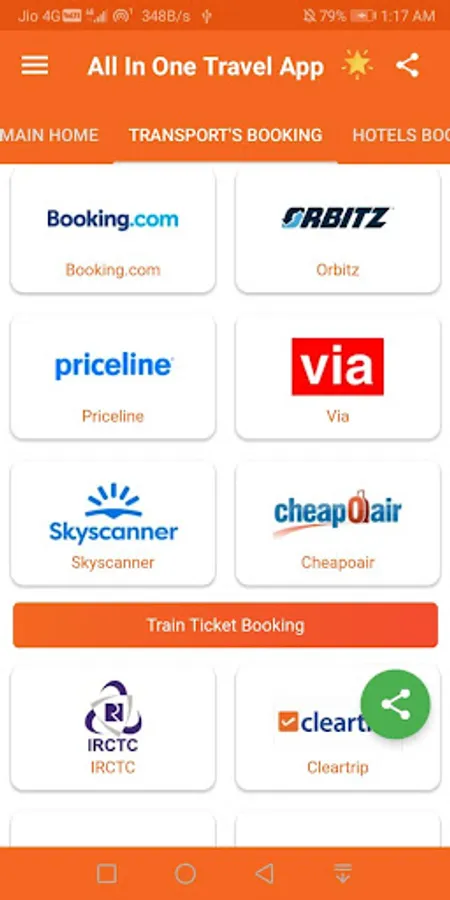 #Using All In One Travel App you no need to install all travel apps separately. Just install one app and access all travel and hotel booking apps like ClearTrip, MakeMyTrip, Goibibo, Expedia, IRCTC, FabHotels, Redbus, Trivago, Skyscanner, OYO Rooms, Hotels.com, Agoda, Ola, Uber, etc.