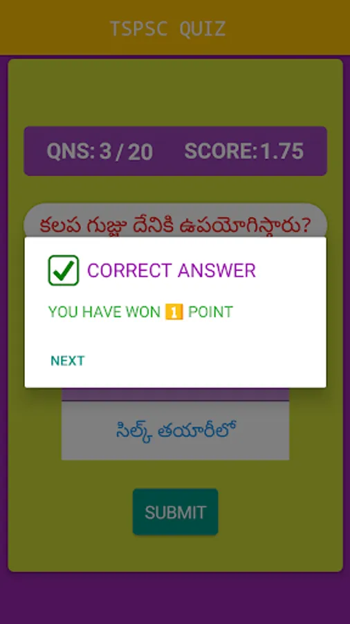 this app is knowledge related app by staring TELUGU QUIZ app there is question and 3 options are there