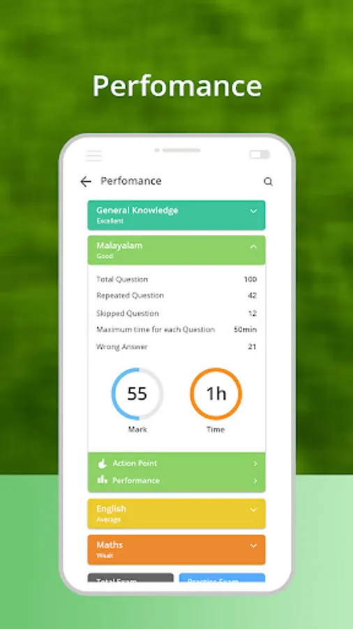 - After each exams you will get a precise progress report which will include you time usage on each questions, wrong and right answers , week spots strong spots etc... and this report will help you to analyze and improve yourself.