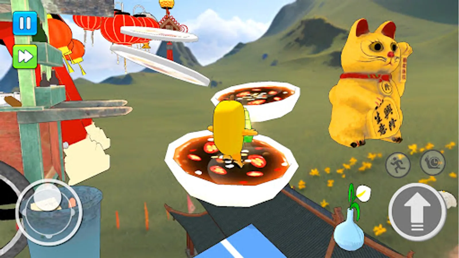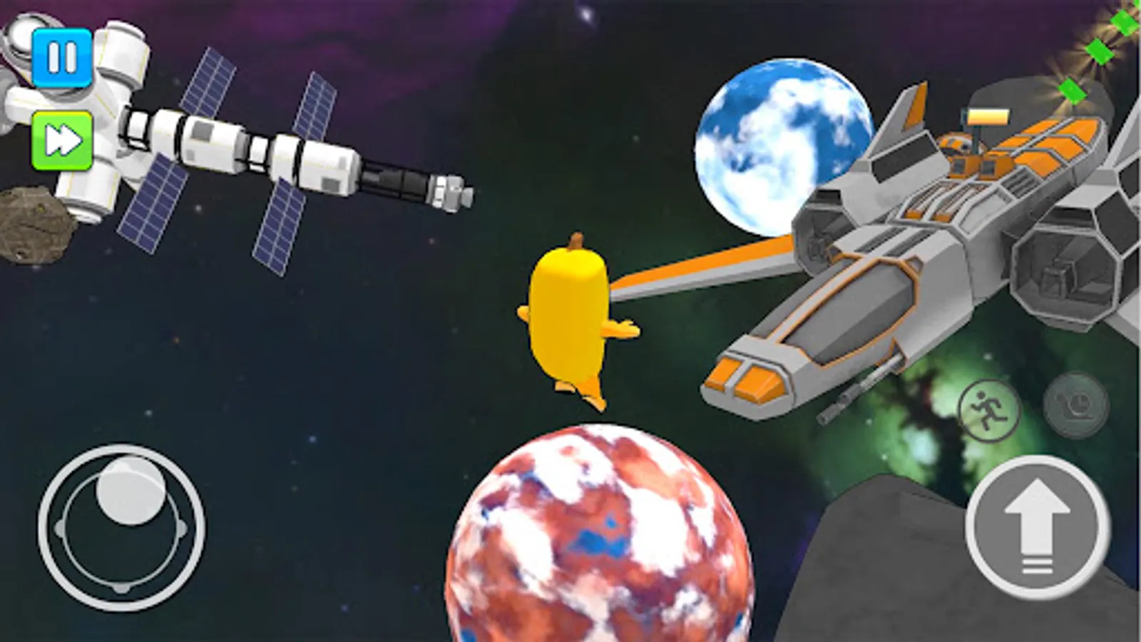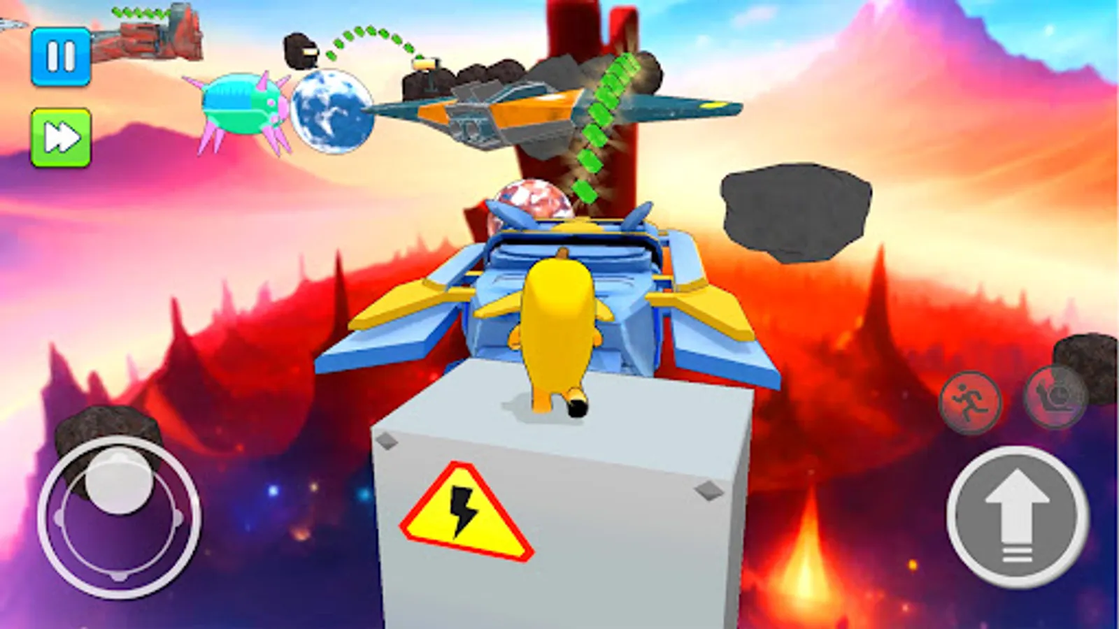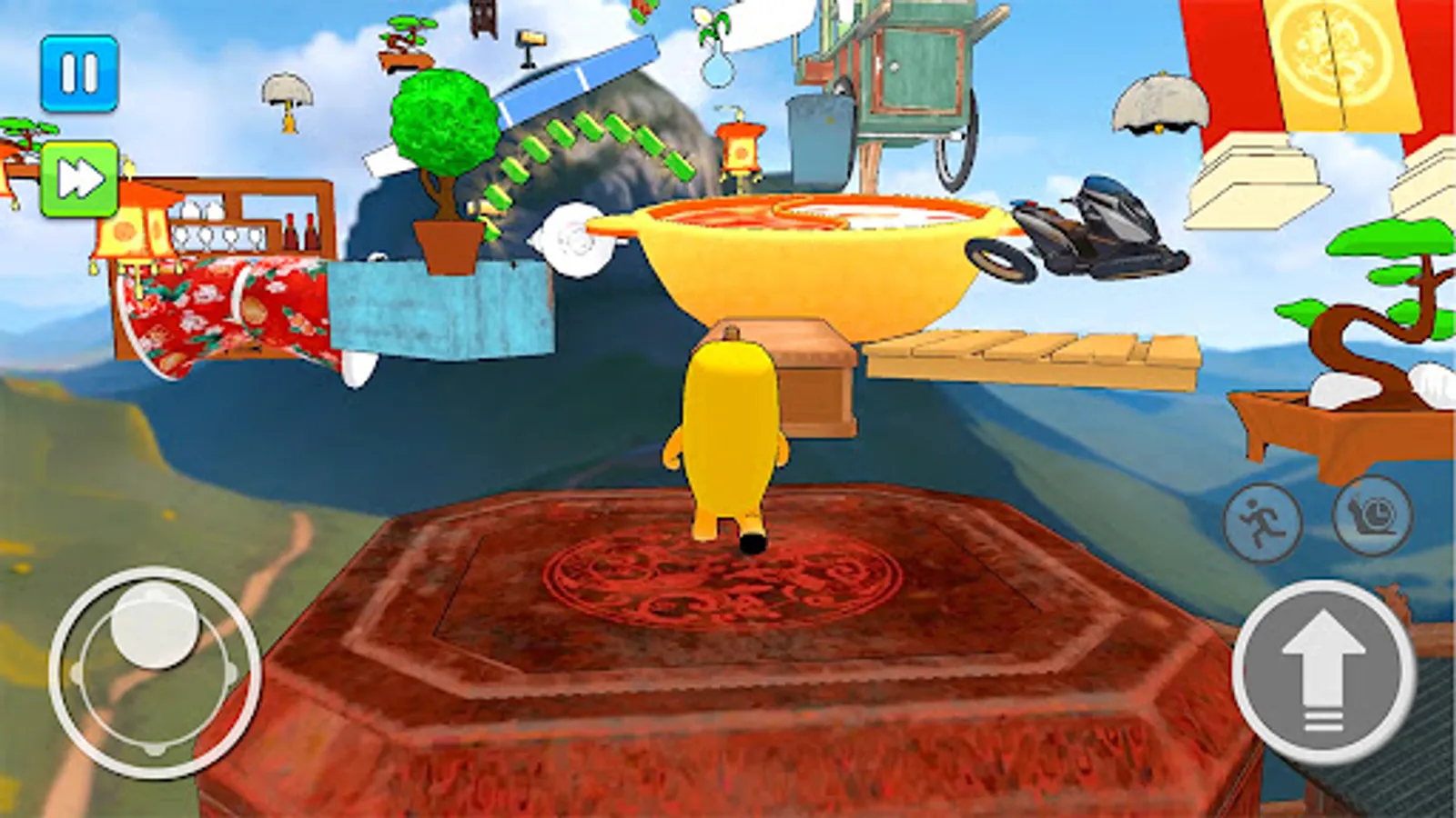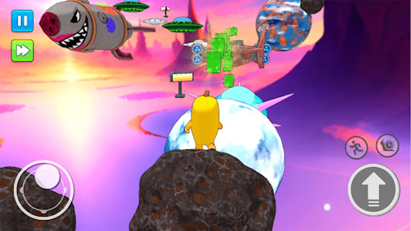 - Use Joystick to run and climb on floating stepping stones
