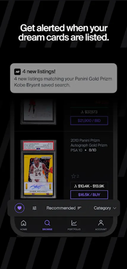 Alt will alert you when new cards are listed across the hobby for your saved searches.