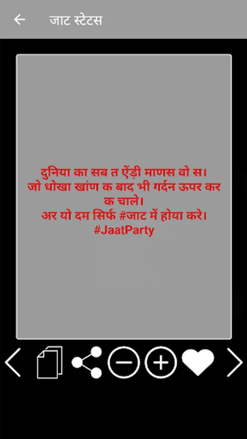 Haryanvi Status is best staus for status lover. this app also have dosti status , jaat status and attitude status colection. best collection of all status in haryanvi language.