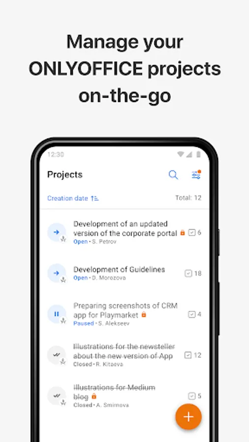 Install our new app and try task management features of ONLYOFFICE Workspace on mobile.