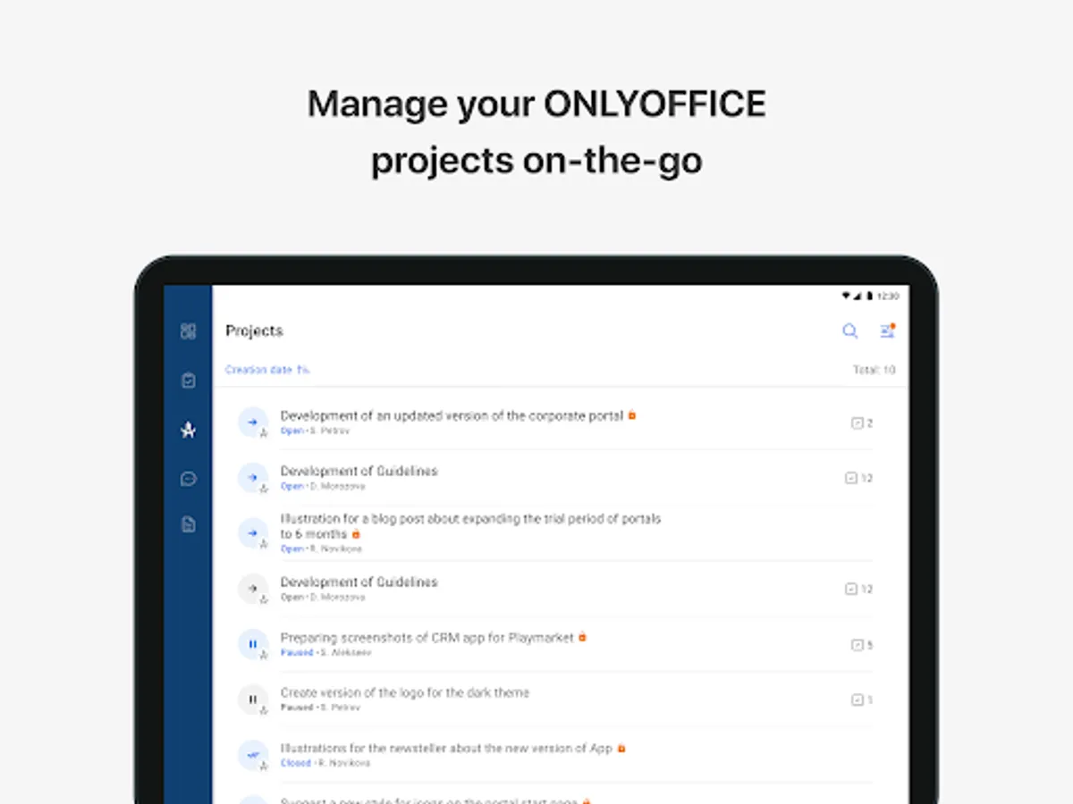 Manage and track your projects and tasks on the go with ONLYOFFICE, a business collaboration solution for teams of any size trusted by over 10,000,000 users worldwide.