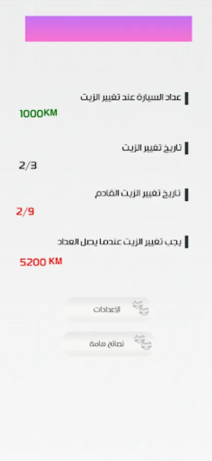 The application also contains very important tips that must be followed to preserve the life of the engine