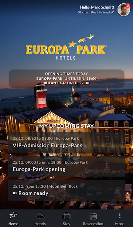 The Europa-Park Hotel App is your personal companion for making every moment unforgettable at the Europa-Park adventure resort. Various functions help you to design your individual getaway. Whether you want to book a hotel package, reserve a spa treatment, or plan an adventure trip with the whole family, with our hotel app everyone will find their personal highlight!