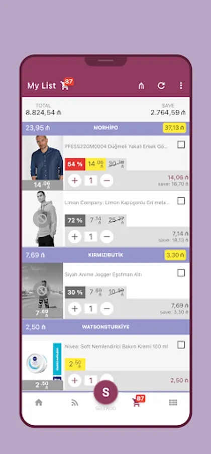 * Selected products from popular online shopping sites like trendyol,morhipo,boyner,koton,h&m,asos,victoriassecret,sephora,shein,lcwaikiki,zara and more.