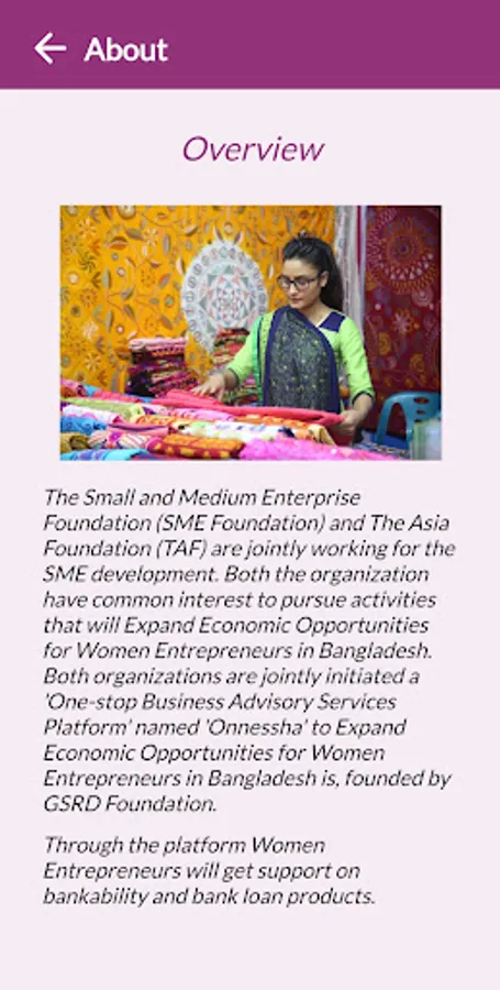 To help women entrepreneurs in Bangladesh, the "Onnessha" app has included all the bank lists and information about women entrepreneurs' loans.