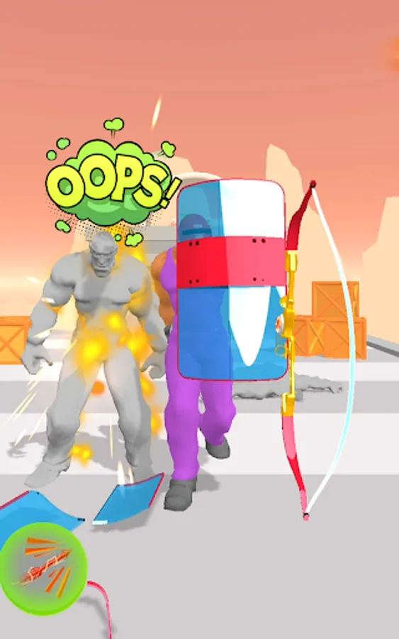 Select your gun or arrow and put the epic stones to unlock skills that will make you unbeatable and be part of the weapon evolution. Then get ready to test your abilities in a fight. In this epic game you can blow the red barrels and crates with your handy crafted weapons like arrows and guns. Also, you can tap the icons on the lower panel to use the skills!