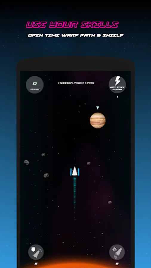 Keep in mind! Launch your spaceships at the right time to arrive at destination planets. Your time warp skill and shield will help you to reach your target.