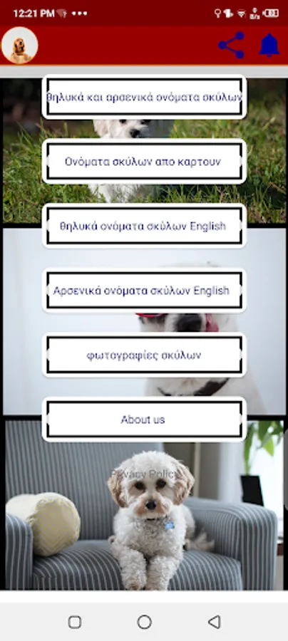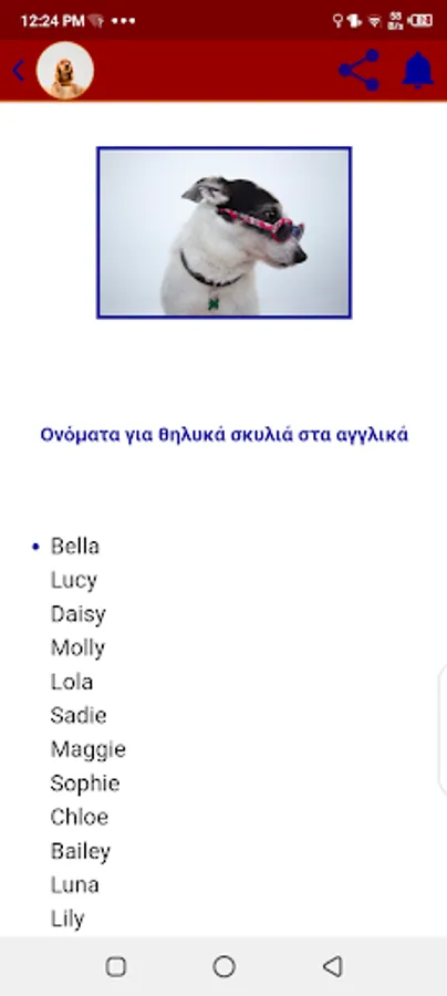 The application includes a wide variety of dog names, from classic to modern and unique. Categorizing the names helps to make it easy