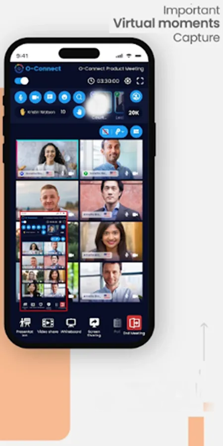 O-Connect has an in-built feature of screen capture that enables users, participants and hosts alike to instantaneously grab screenshots of important moments during meetings or webinars.