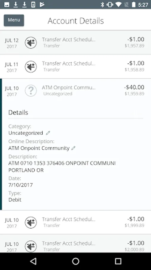 • Transfer funds between your OnPoint accounts and your accounts at other financial institutions.