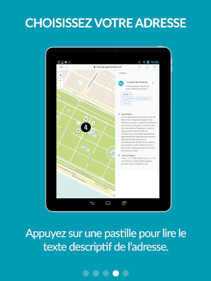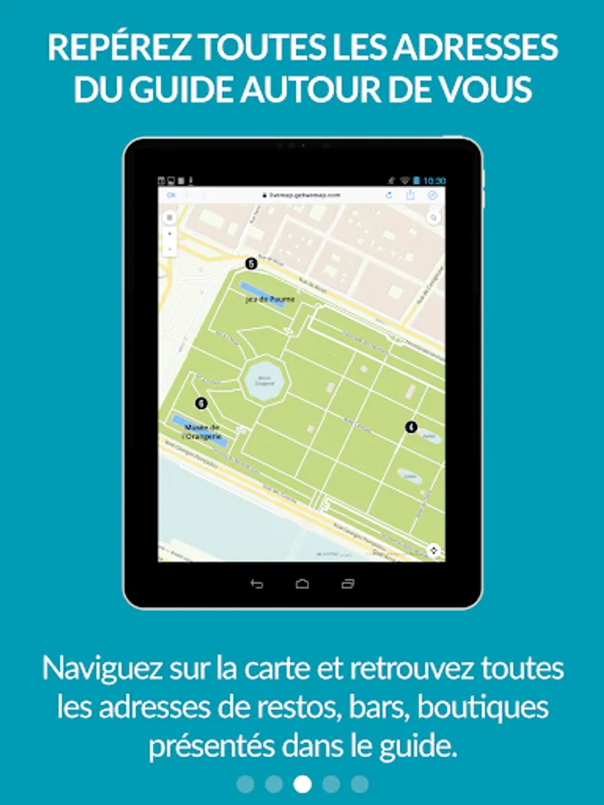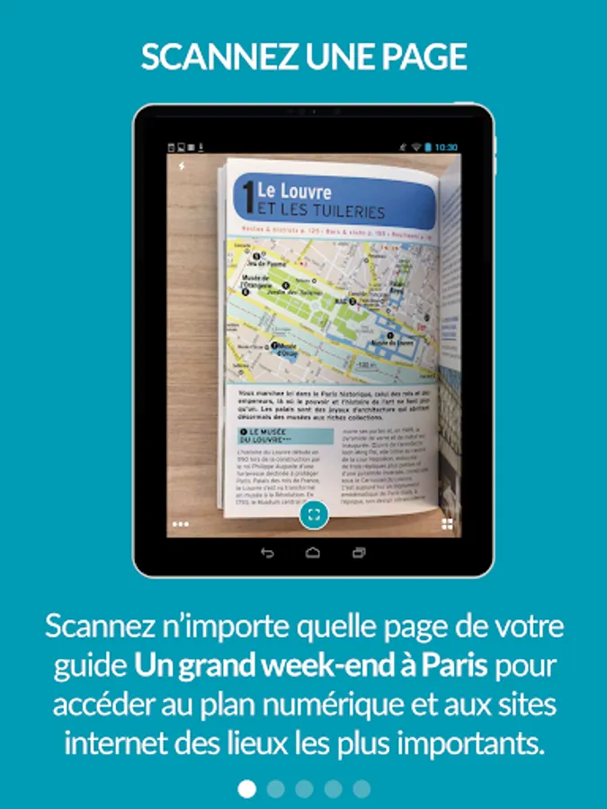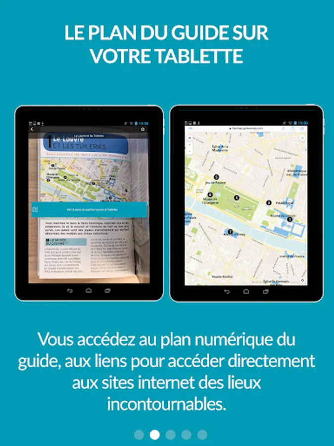 This application allows you to have on your mobile the digital map of the guide A Grand Weekend in Paris. You can geolocate, navigate on this map, locate the sites and addresses of the guide and consult their descriptions. To access it, nothing more simple! With the app, take a photo of any guide page and you'll be able to access the map and links to the addresses.