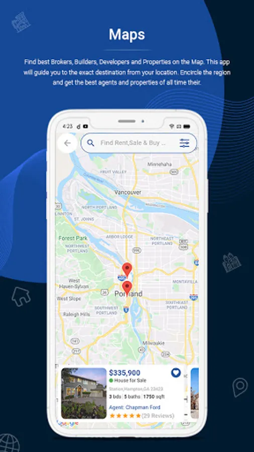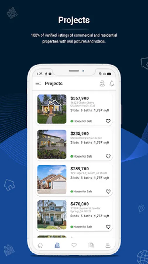 Android and iOS app with list of property to buy sell and rent