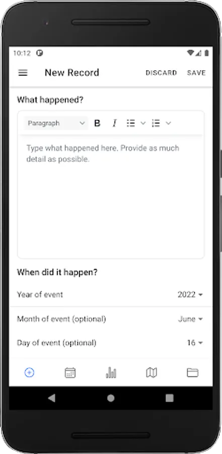 With both the free and subscription service, ONRECORD allows you to combine your record of what has happened with supporting evidence such as time/date stamp, photos, screenshots, video or audio recordings, documents, and location data.