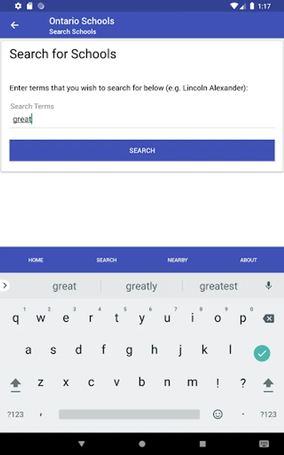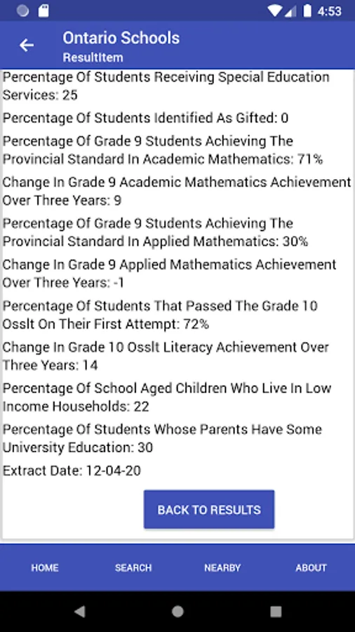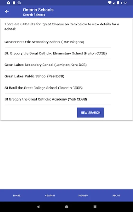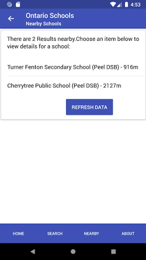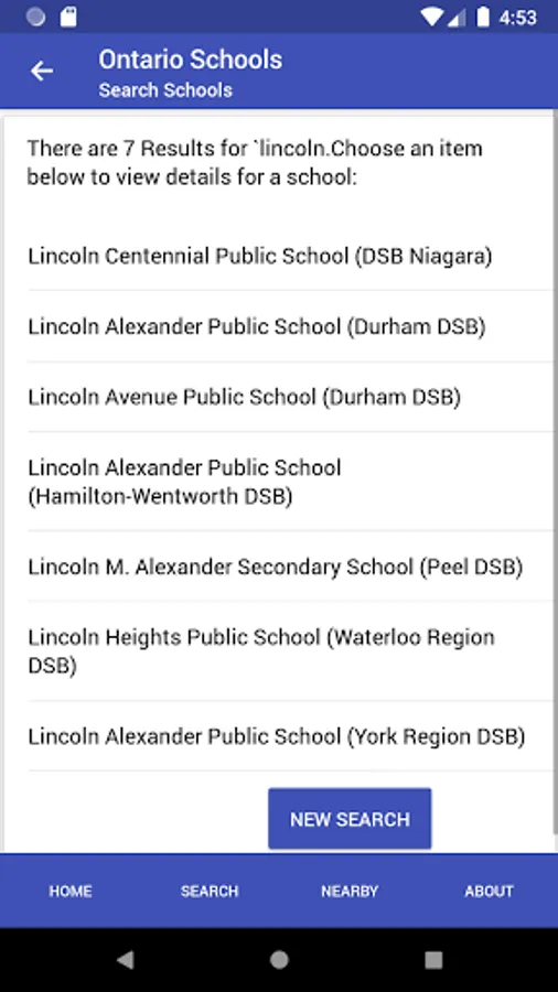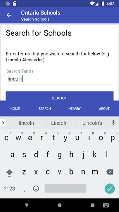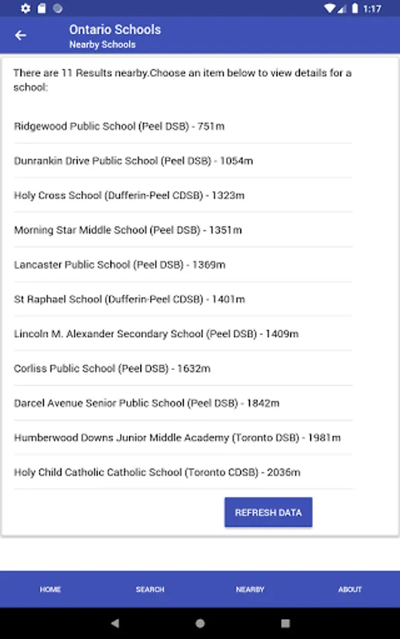 Allows you to search for schools in Ontario by name or find nearby schools. Open to feedback and suggestions on how to improve the app :)