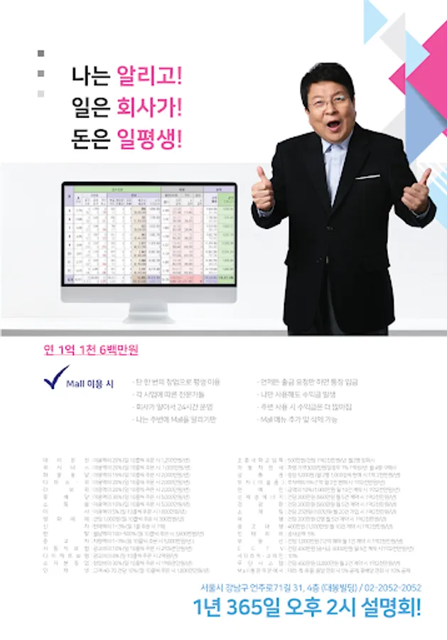 특히, 멀티온은 대표번호 홍보만으로 수익을 올릴 수 있기 때문에 지금 하고 있는 일과 병행할 수 있는 투잡(two job)사업일 뿐 아니라 소자본, 무점포로 고수익 창출이 가능한 신개념 1인 창업 아이템입니다.