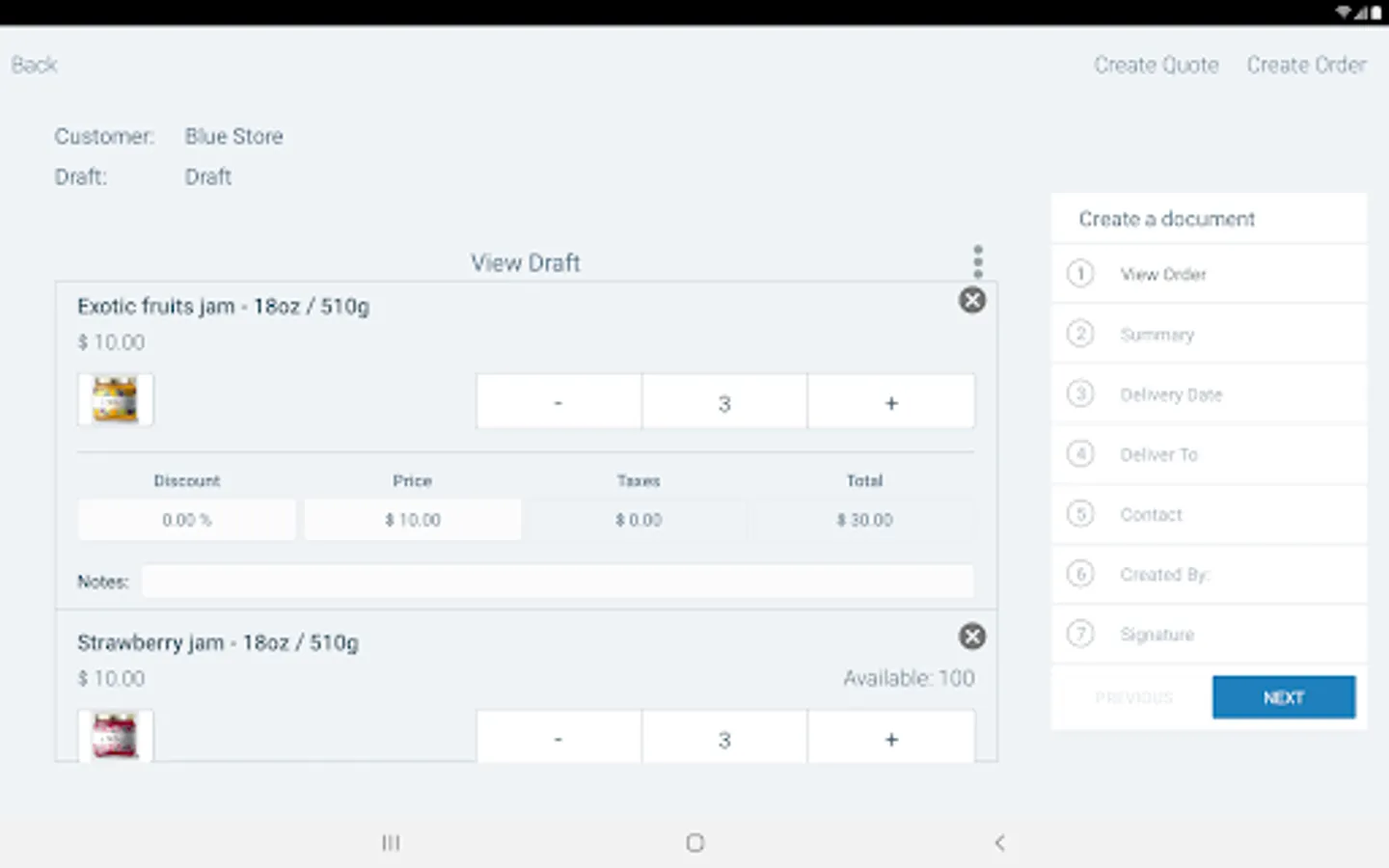 Use a mobile device to quickly create orders and quotes whilst on the road or at a tradeshow, even when you are offline.