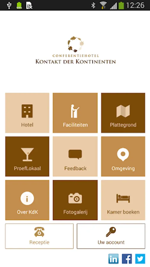 The KdK App, you have all the information and the latest news from Conference Hotel Kontakt always at hand. You can find information about the hotel and its facilities. On the interactive map you will find your room or hall. Want a day out and about, please check the card what to do in the area. Call the reception with the press of a button. Are you congres-/vergaderplanner? Then you can make your program, etc. upload in a protected part of this app, so your participants can consult this! Always