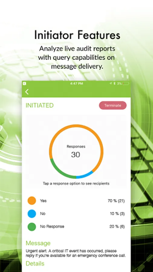 Send critical alerts to recipients and get the feedback you need any time via your mobile device. OnSolve MIR3 offers the features you need for effectively managing notifications on the go. This powerful alerting service provides features for initiators and recipients, as well as, a security suite of features with MIR3 SOS and LookOut.