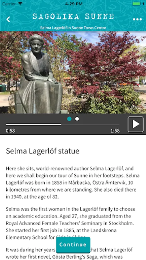 In the app there are several tours with guidance and stories. Get to know Selma Lagerlöfs Sunne and places that are inspired by fabulous stories, let yourself be guided to some of Sunde's donut spots and experience Mårbacka, the farm where Selma Lagerlöf lived a large part of her life.