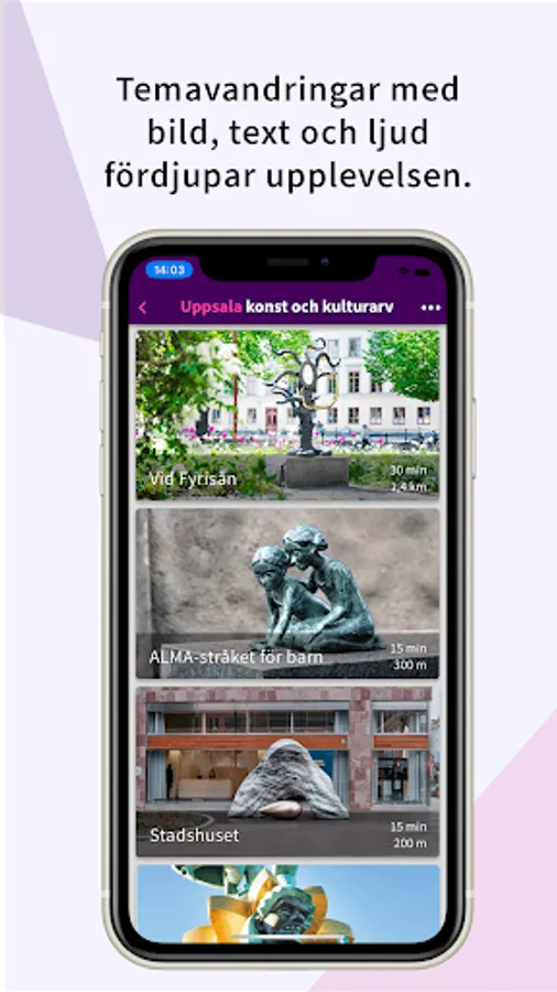 Experience Uppsala - a city of life in constant change. Discover new and learn more about the city's art and cultural heritage with our theme walks or find your own gems via the map. We present public art and cultural heritage in a way that deepens the experience of the physical work or place. We tell through image and text, and in some tours you can also activate audio tracks. You who want can also test your knowledge and challenge your friends in a quiz!