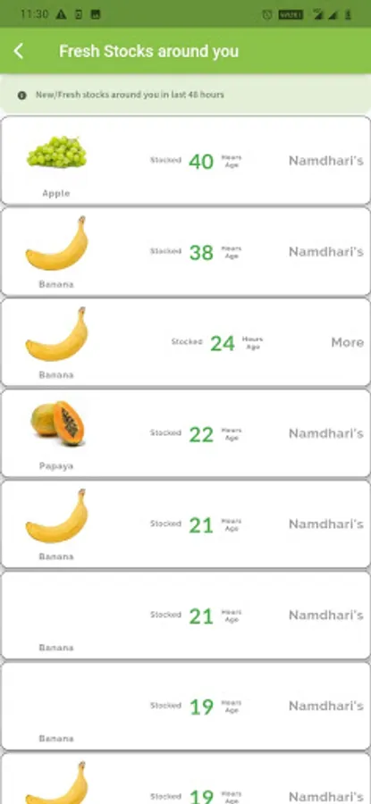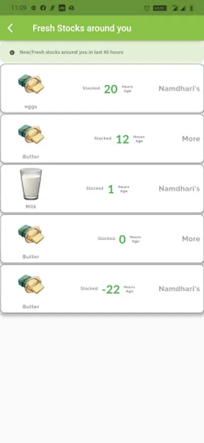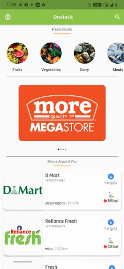 Users can access Information about the Latest Stocked perishable goods such as Fruits, Vegetables, Dairy, Meat, Sweets etc at Shops near you.