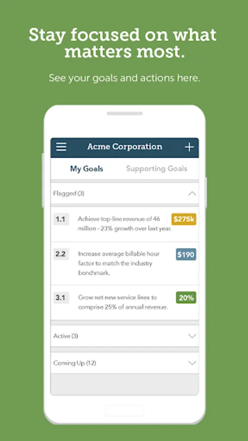 Stay focused by seeing priorities with a single glance. OnStrategy Mobile keeps you aligned by monitoring your performance and keeping what’s important front and center.