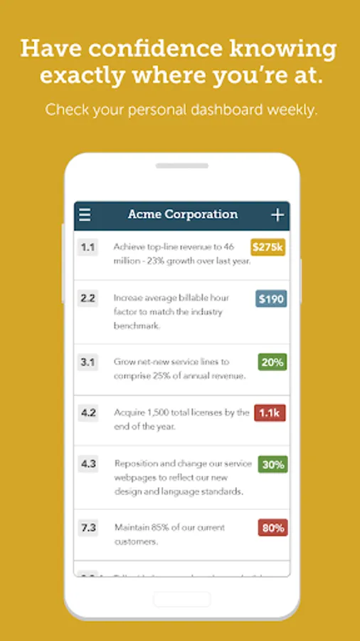 OnStrategy Mobile provides simple, streamlined progress reporting so you can manage your performance in a matter of seconds.