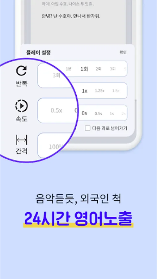 ∙ If you press a card for a long time, only that card is fixed and repeated infinitely. Fix difficult cards to listen to, and when you have memorized them all, press and hold again to unlock.