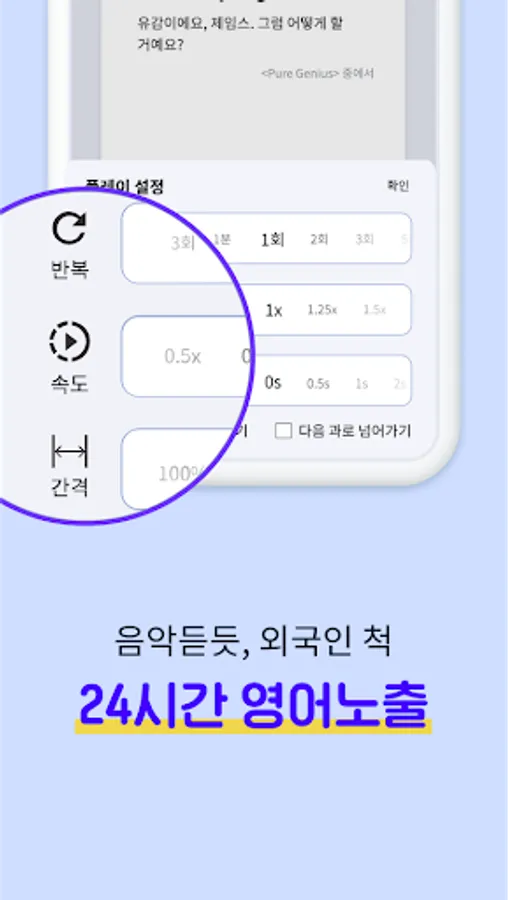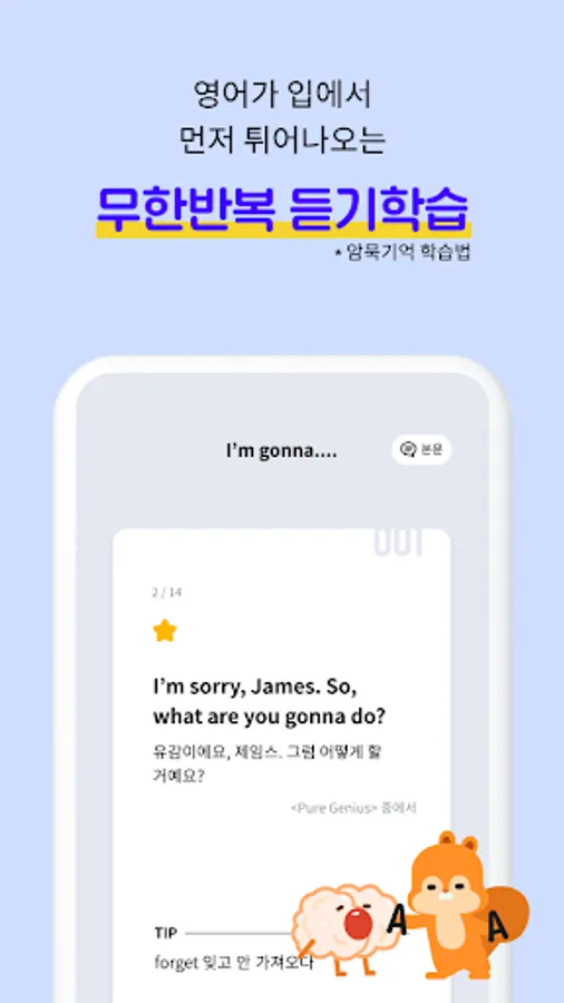 ∙ If you press and hold a card for a long time, only that card is fixed and repeated indefinitely. Pin and listen to a difficult card, and when you have memorized it, press and hold again to release it.