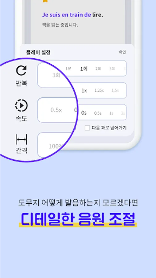 As French people learn, try to flow from simple sentences to native pronunciation.