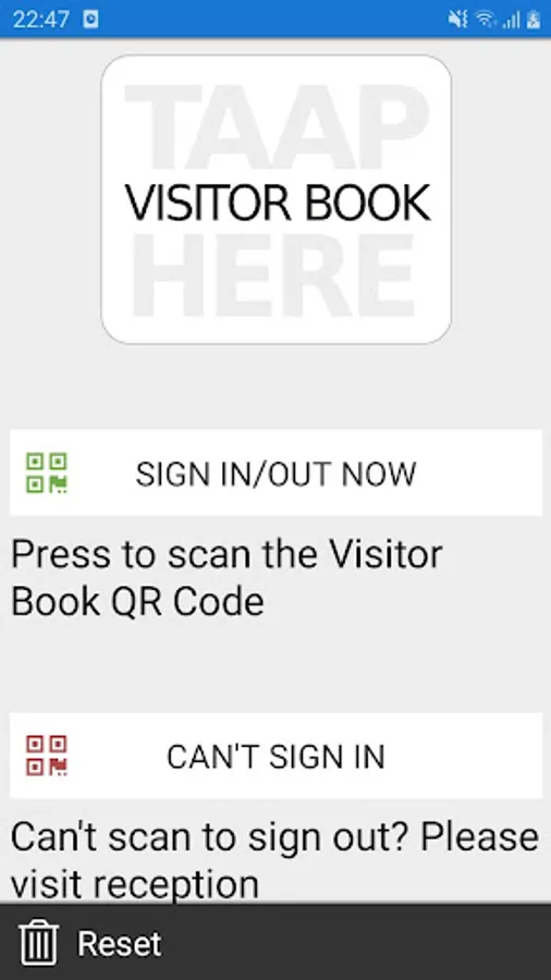 The TAAP Visitor Book app is your one stop app that can be used for all sign in/out locations. The sign in/out process is really simple, fast and effective.