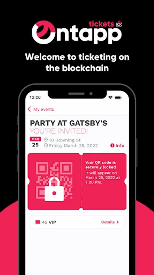 Ontapp tickets delivers the latest NFT ticketing technology to enable to you use, share and sell tickets to your favourite events.