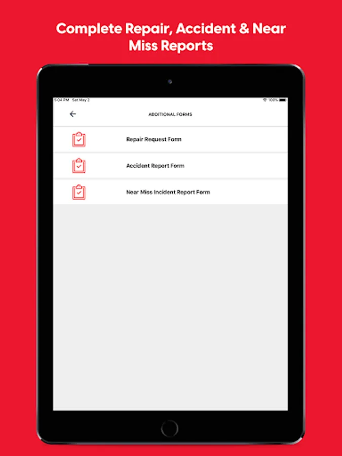 - Complete Repair Report, Accident Report and Near Miss reports with details and photos.