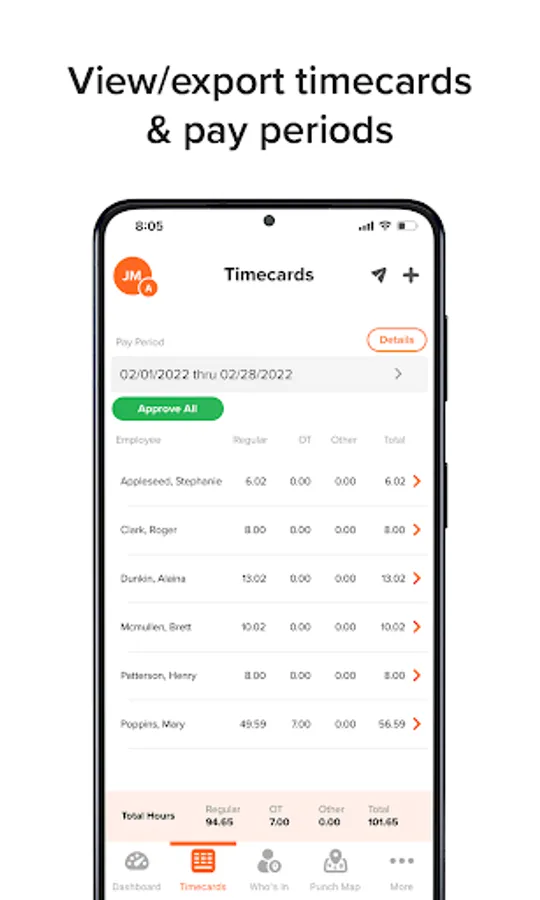 • Timecard Editing - Managers can easily edit timecards and add hours when needed.