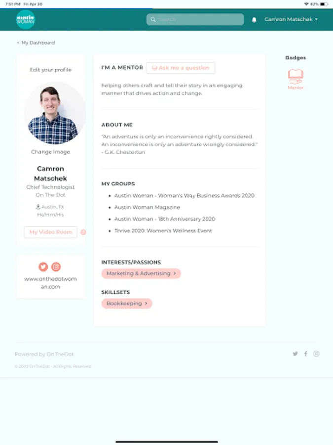 Your profile helps us to create an optimal networking experience by matching you to your professional peers. We know that when we make connections based on similar roles, experiences, shared passions and interests, those connections are valuable and have great staying power.