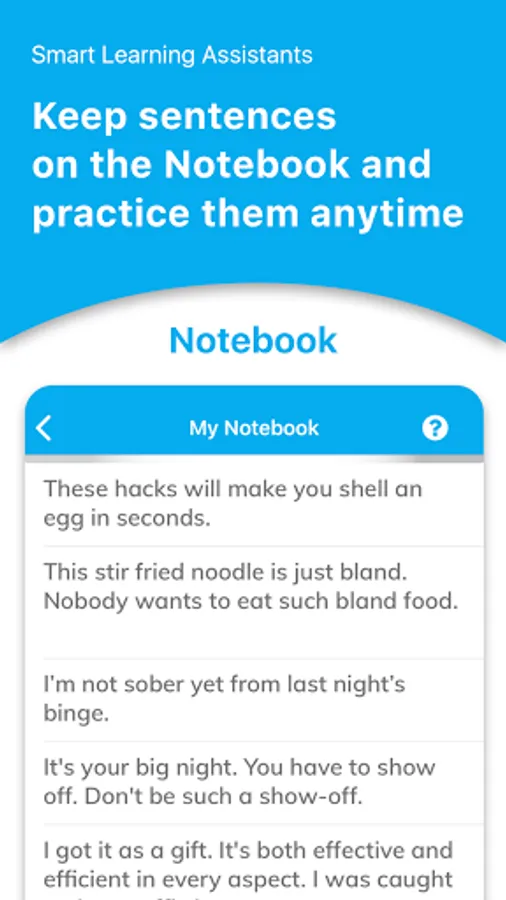 Archive English & Korean expressions in the smart Notebook we provide. Notebook helps you to listen and repeat the expressions.