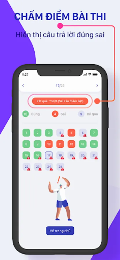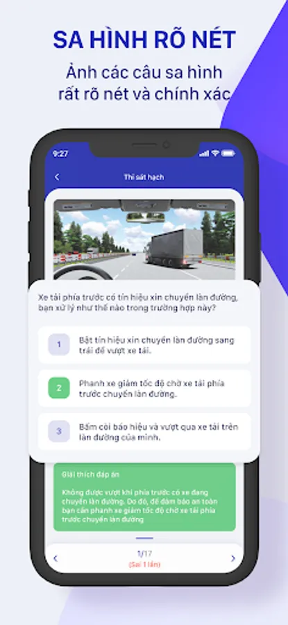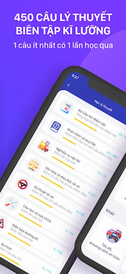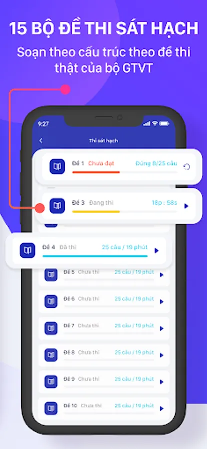 ✔️ Actual test with the feature of creating random test questions according to the structure of the exam questions of the General Department of Roads of Vietnam Ministry of Transport for driving licenses B1, license B2, license C, license D, license E and license F