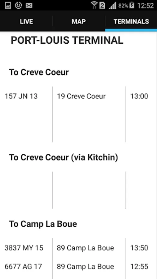 Features Routes: 19 Port-Louis, 19A Port-Louis (via Kitchin), 19 Creve Coeur, 19A Creve Coeur